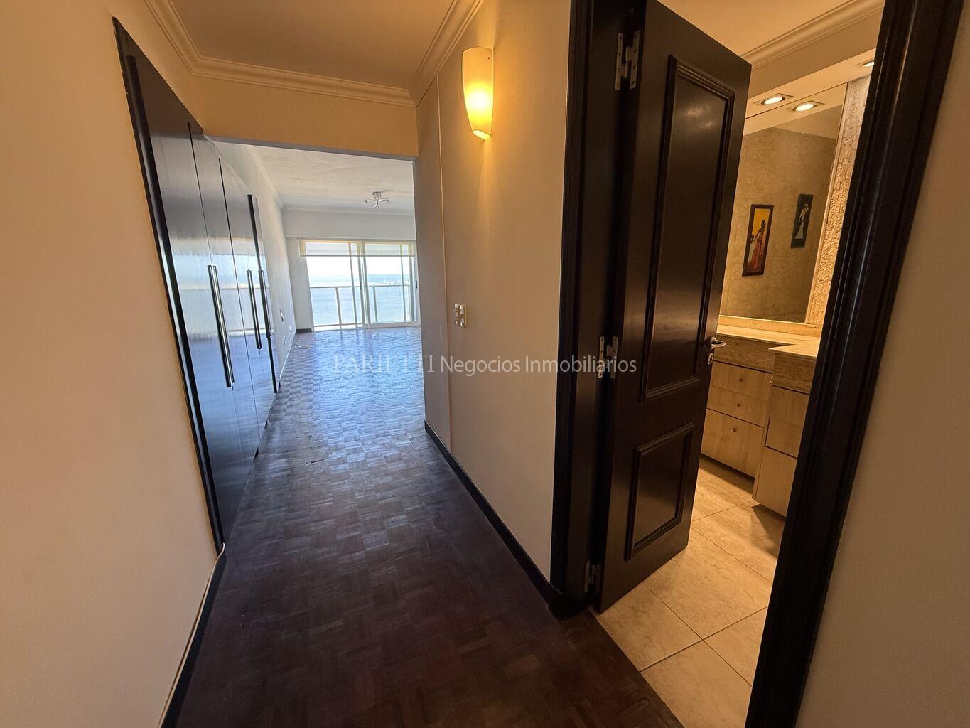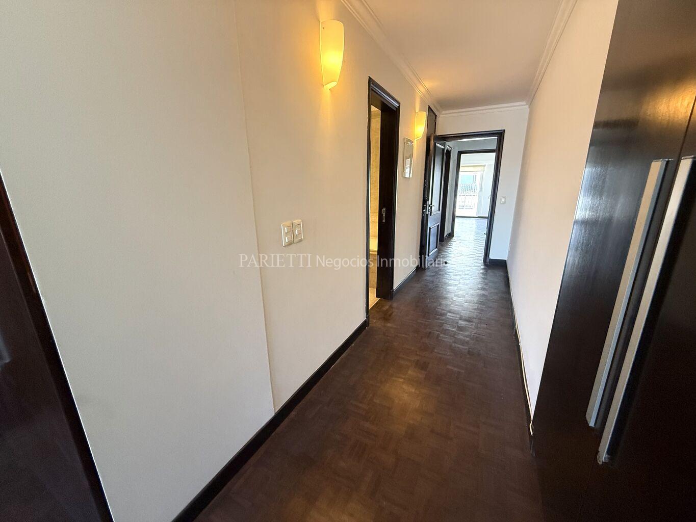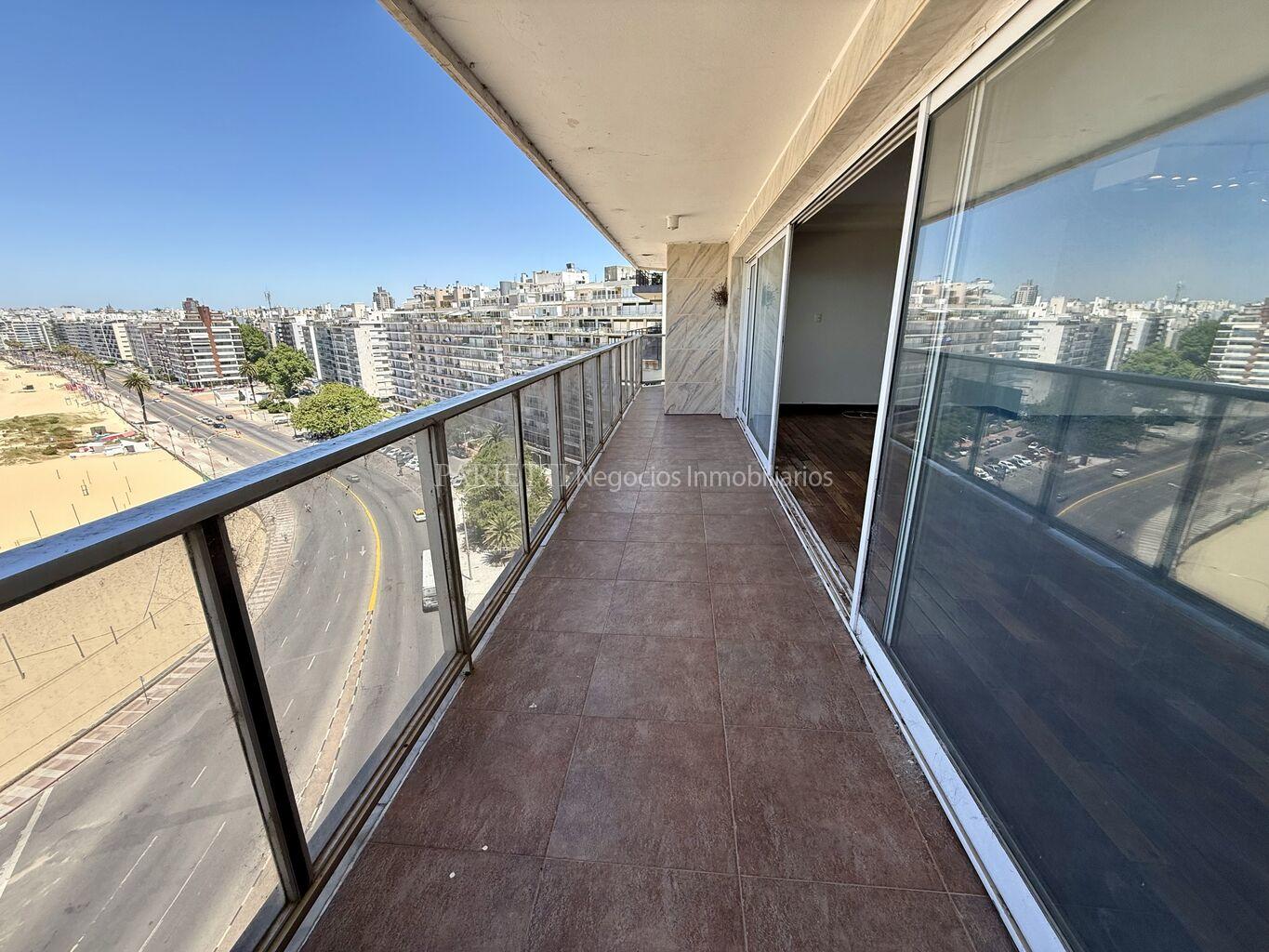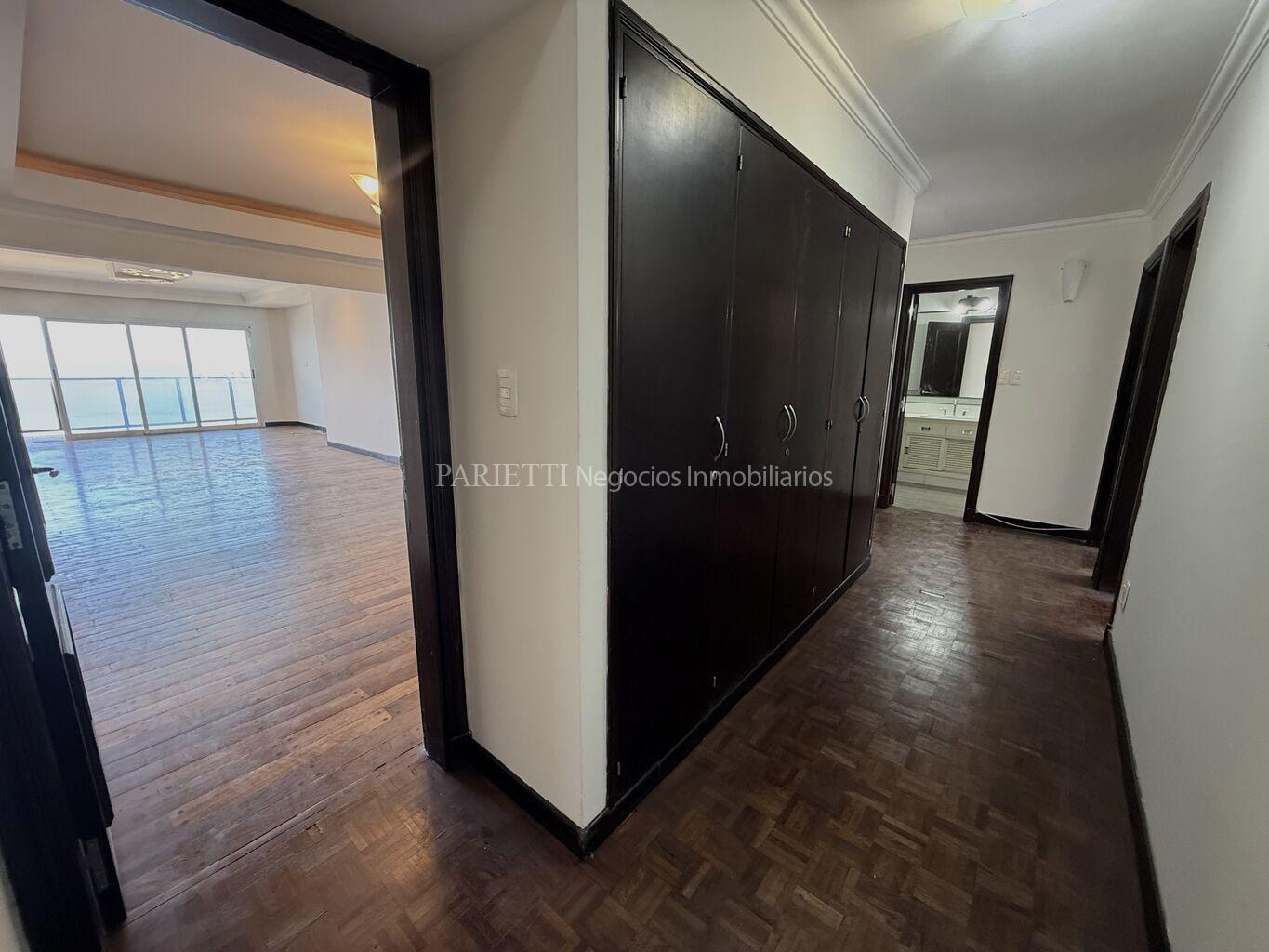 REFERENCIA......... 1326 en PARIETTI NEGOCIOS INMOBILIARIOS SRL.Espectacular piso alto sobre Rambla. Gran recepción, con living y comedor , con salida a amplia terraza principal, toilette, estar semi integrado a la cocina , con salida a terraza secundaria y a terraza lavadero, muy soleado, 3 dormitorios (suite con vestidor), 2 baños, cocina, servicio completo. Baños y cocina de muy pocos años. Garage para estacionar 1 auto grande, con espacio para otro auto mediano.