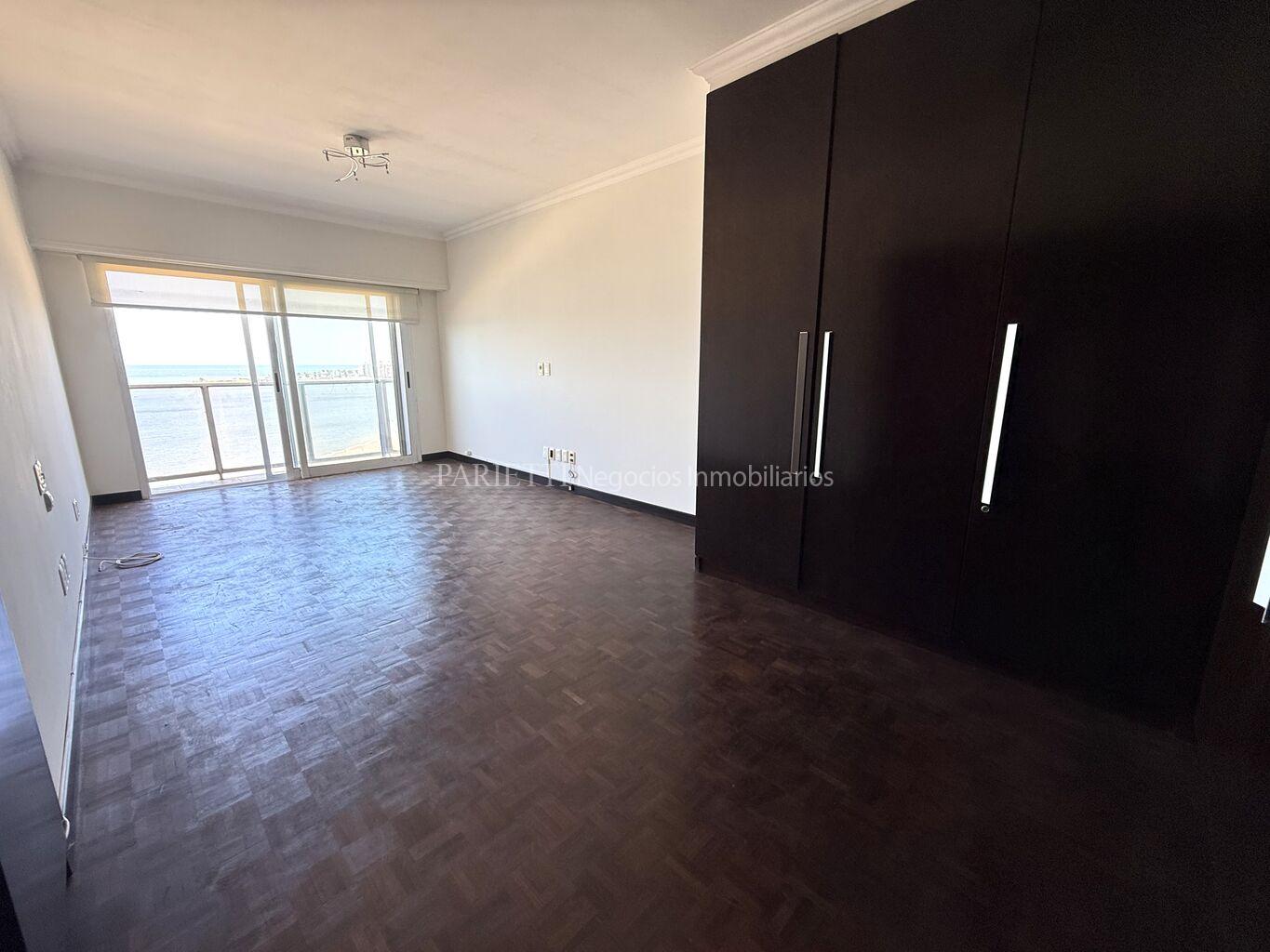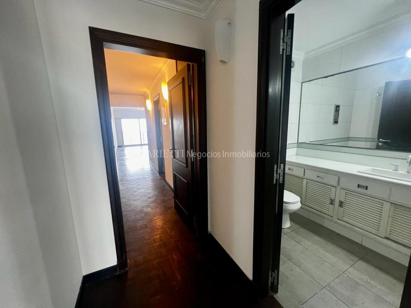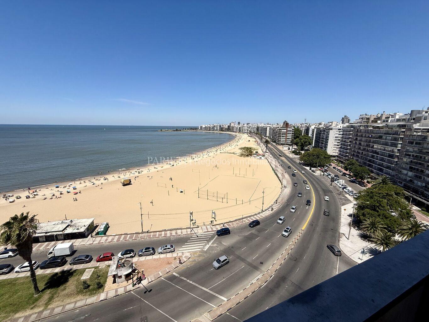 REFERENCIA......... 1326 en PARIETTI NEGOCIOS INMOBILIARIOS SRL.Espectacular piso alto sobre Rambla. Gran recepción, con living y comedor , con salida a amplia terraza principal, toilette, estar semi integrado a la cocina , con salida a terraza secundaria y a terraza lavadero, muy soleado, 3 dormitorios (suite con vestidor), 2 baños, cocina, servicio completo. Baños y cocina de muy pocos años. Garage para estacionar 1 auto grande, con espacio para otro auto mediano.