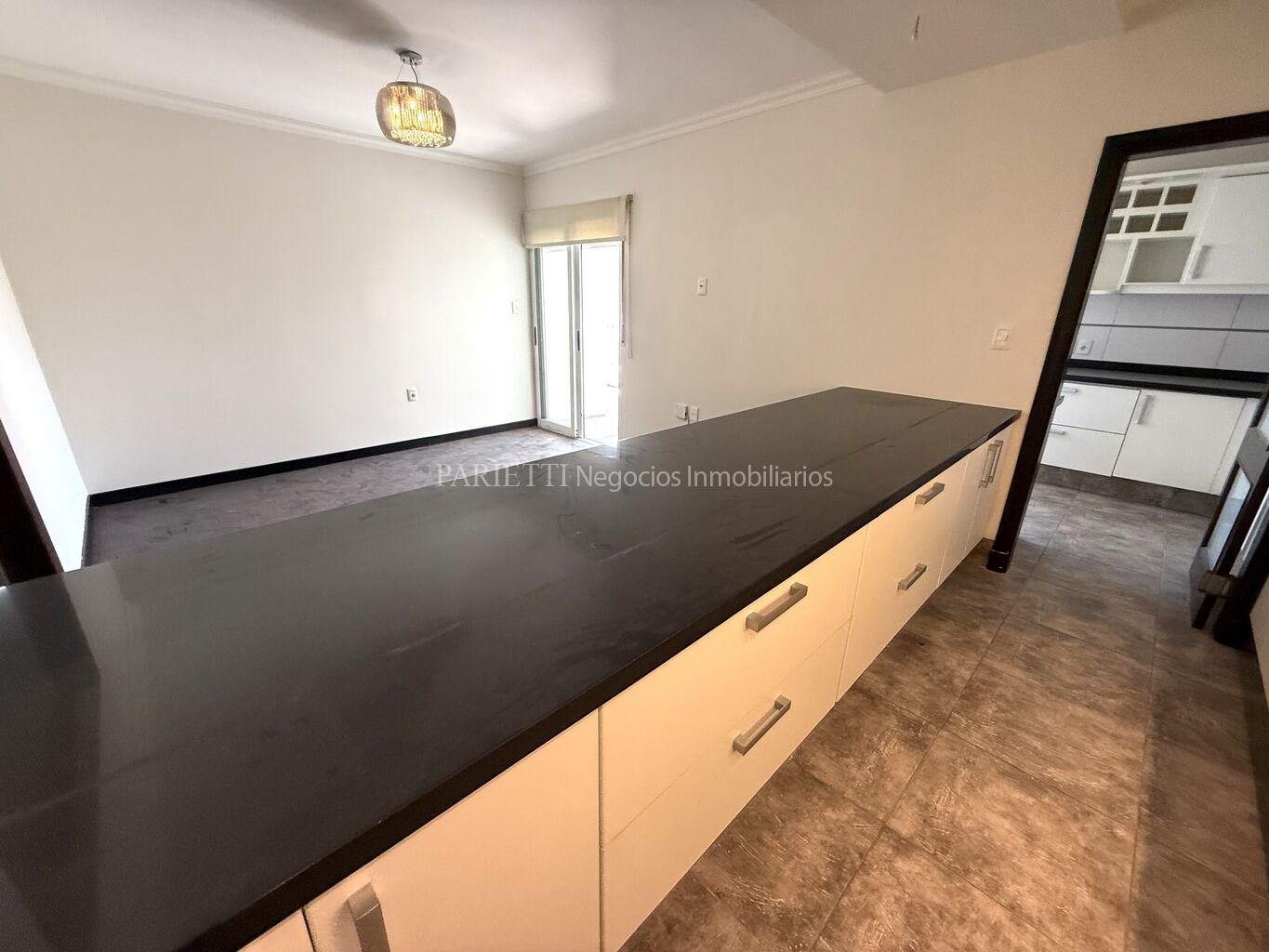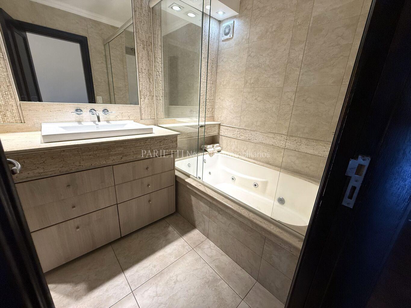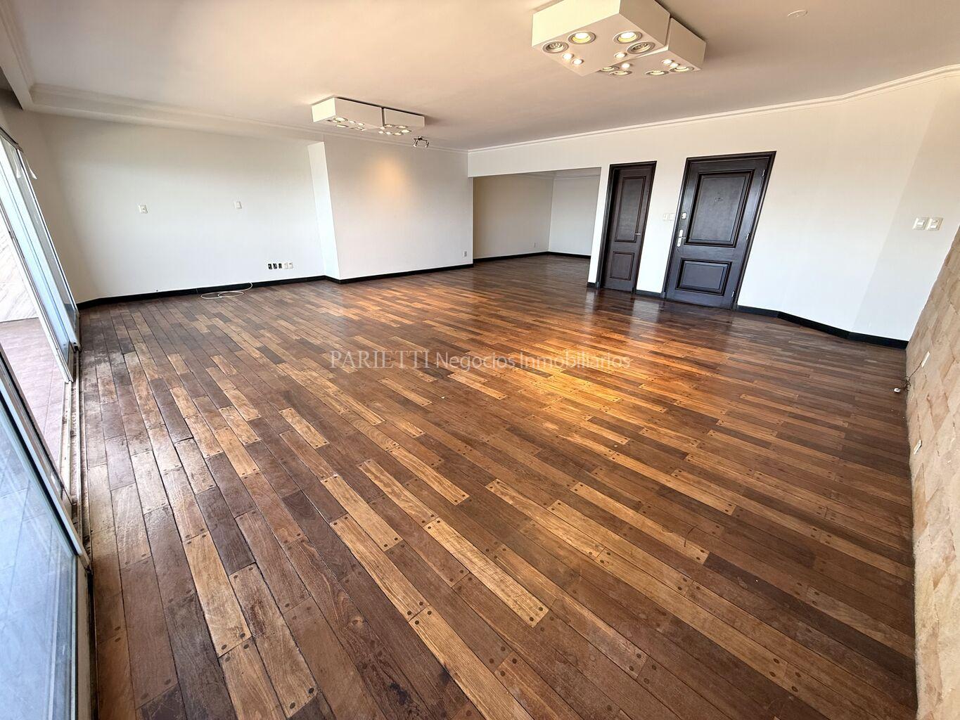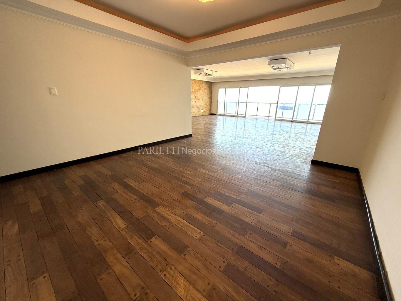 REFERENCIA......... 1326 en PARIETTI NEGOCIOS INMOBILIARIOS SRL.Espectacular piso alto sobre Rambla. Gran recepción, con living y comedor , con salida a amplia terraza principal, toilette, estar semi integrado a la cocina , con salida a terraza secundaria y a terraza lavadero, muy soleado, 3 dormitorios (suite con vestidor), 2 baños, cocina, servicio completo. Baños y cocina de muy pocos años. Garage para estacionar 1 auto grande, con espacio para otro auto mediano.