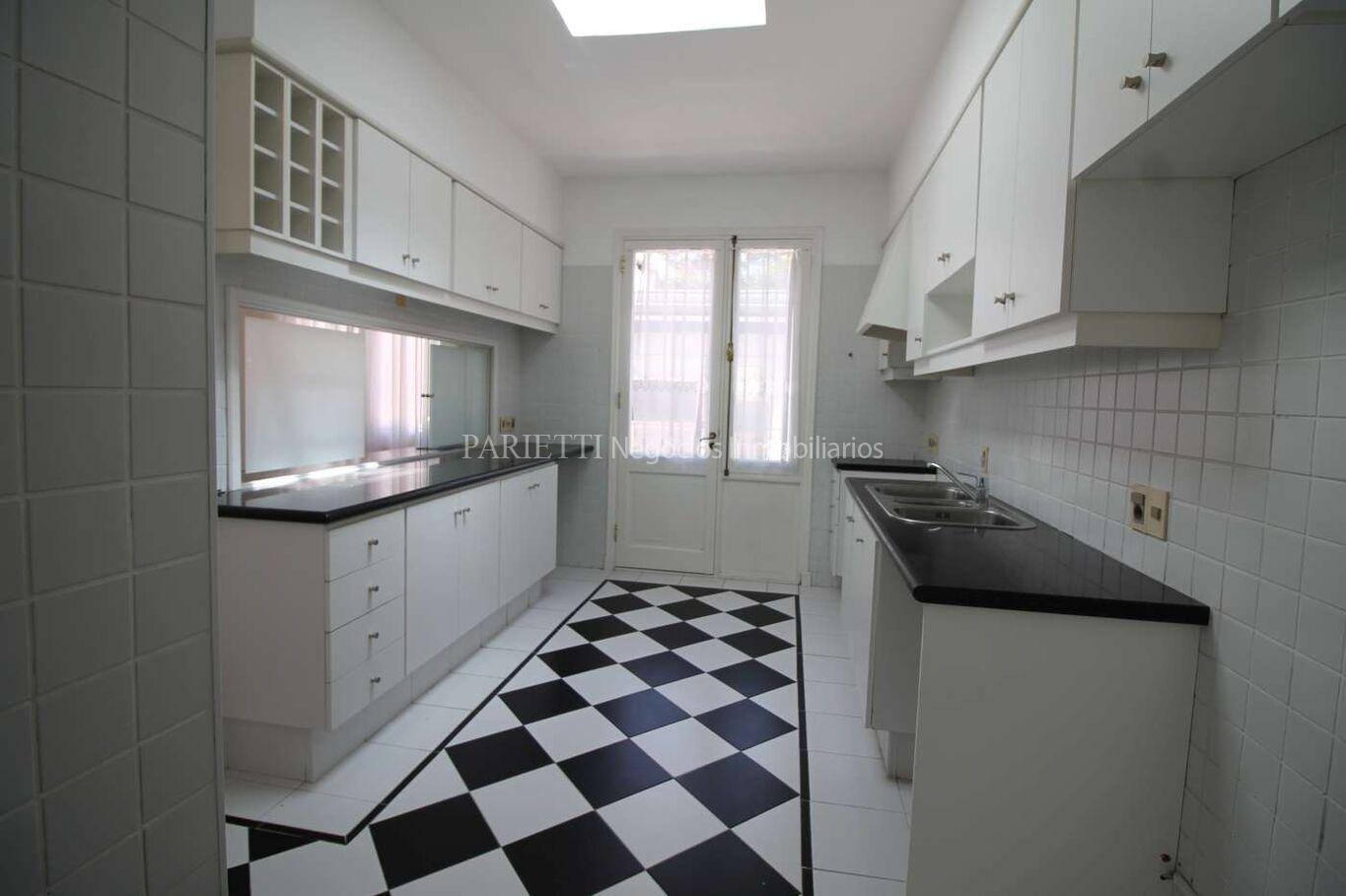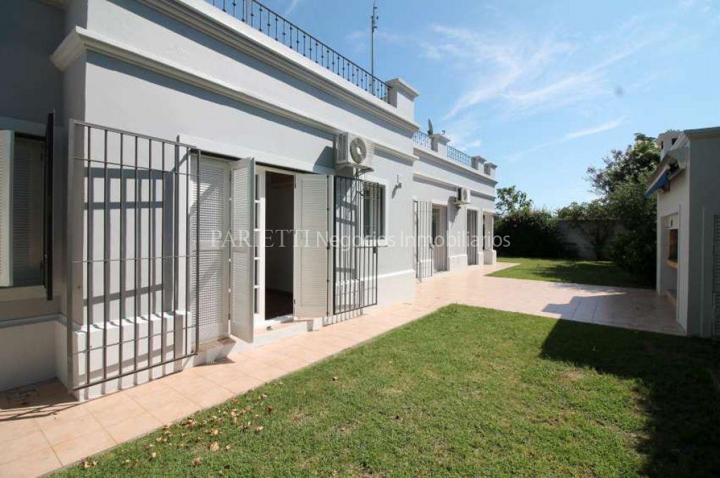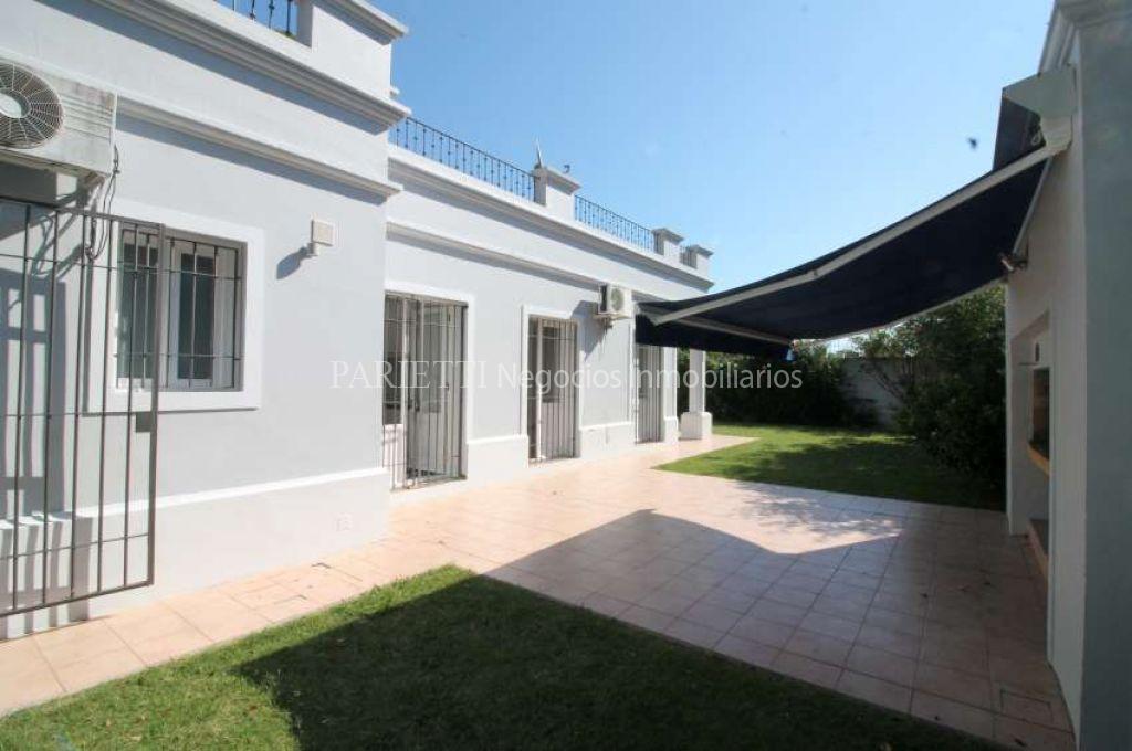 Una Planta. Hall de Entrada, Toilette, amplio Living con estufa a leña y Comedor separado por arcada, 3 Dormitorios (los 3 en suite), 3 Baños, Cocina americana y Servicio completo e independiente (potencial departamento de huéspedes). Cocheras. Muy agradeble fondo, con parrillero. Excepcionalmente luminosa.
