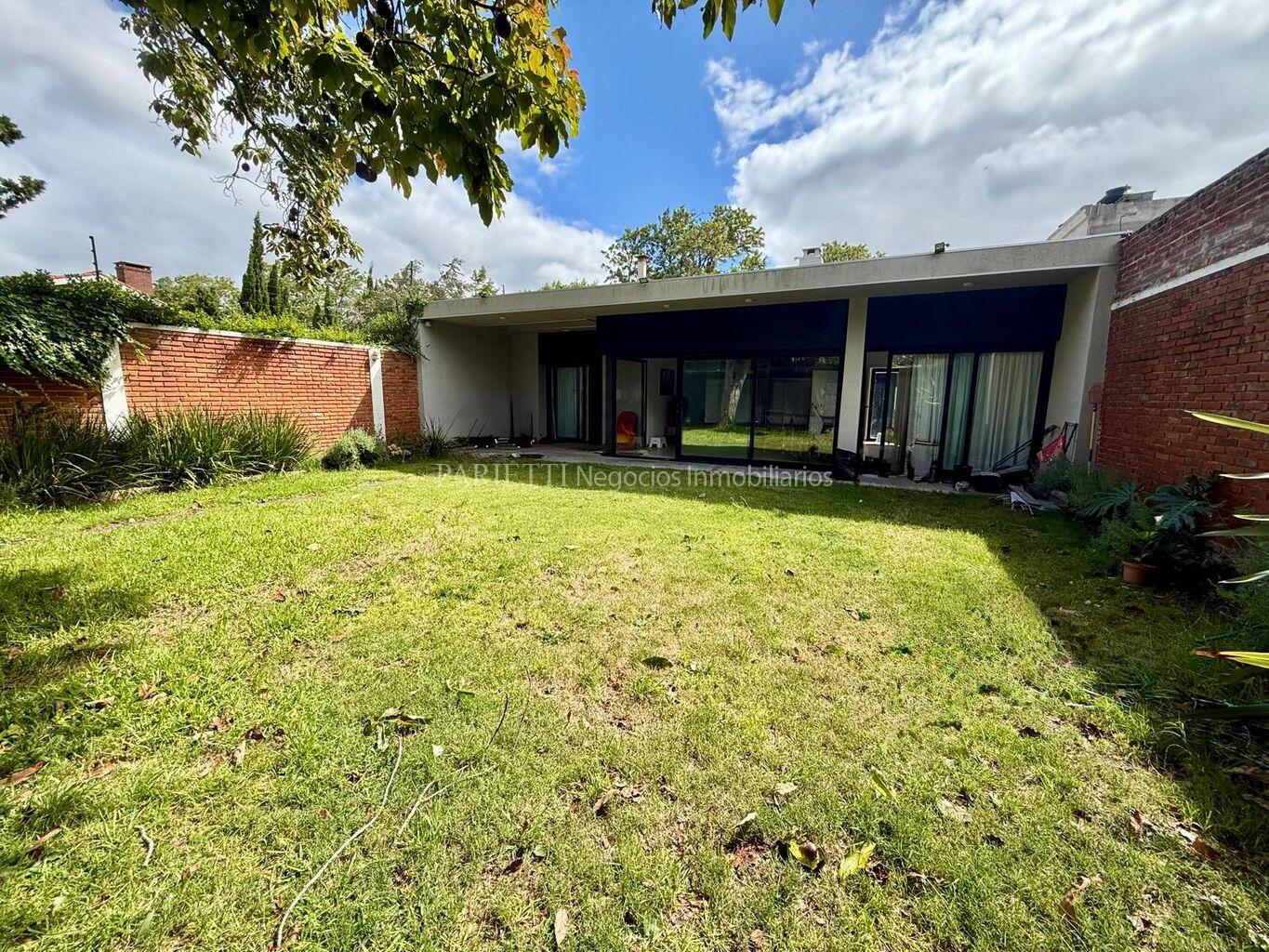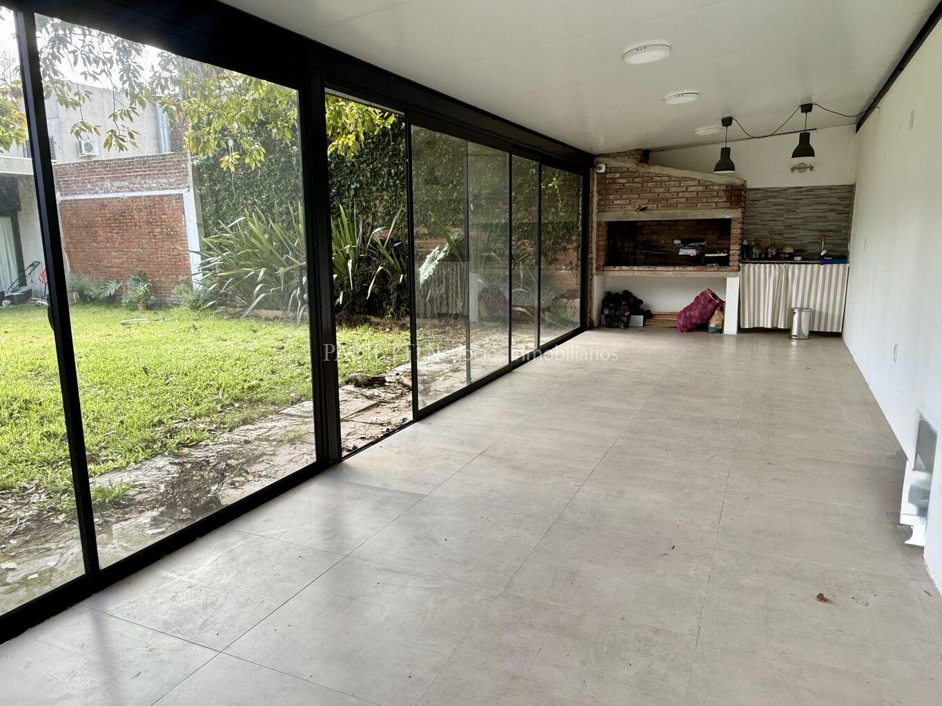 Muy bien ubicada en pleno Centro de Carrasco, apta para vivienda o destino comercial. Desarrollada en una planta. Living amplio, estar comedor con cocina integrada, toilette, 3 suites. Muy lindo jardín al fondo con amplio parrillero cerrado. Garaje.