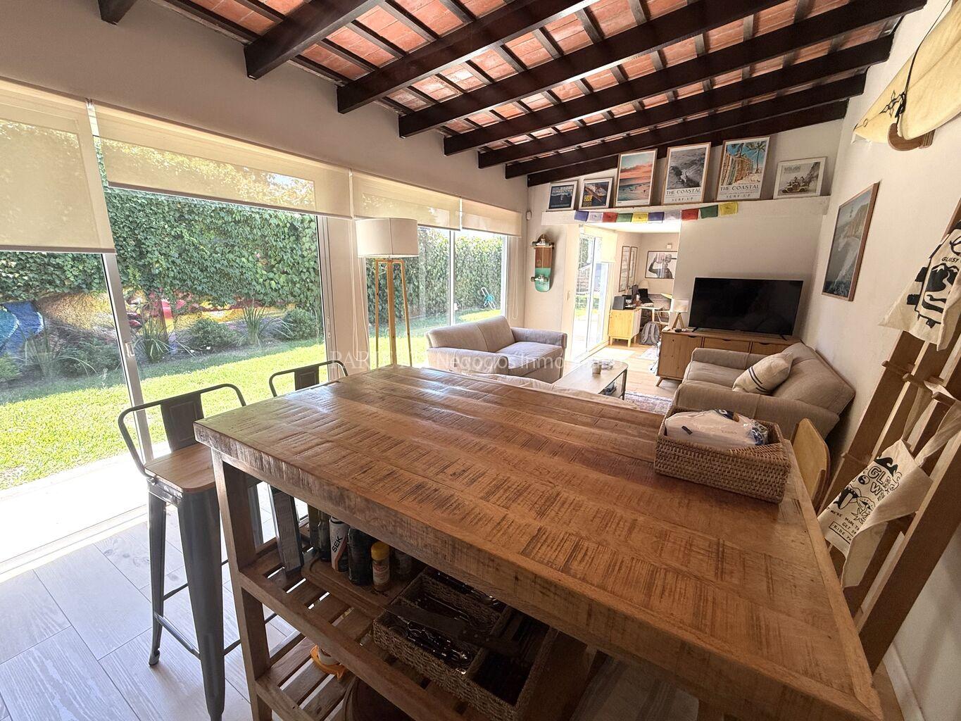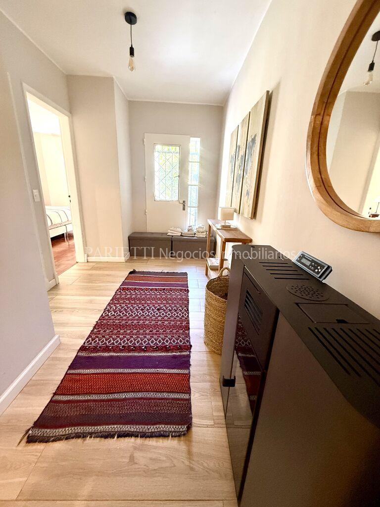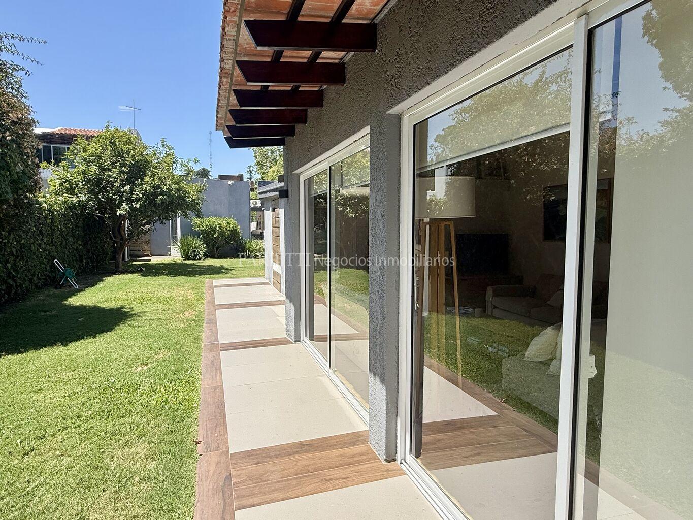 REFERENCIA........2317..........en Parietti Negocios Inmobiliarios SRL.Pleno Carrasco Sur. Impecable estado, ubicada a una cuadra de Arocena. Una planta. Estilo contemporáneo, con mucha luminosidad. NADA PARA HACERLE. Living- comedor, estar con cocina integrada y estufa a leña, 3 dormitorios, 2 baños. Muy lindo jardín al fondo, con una gran estar con baño completo y un muy buen parrillero con barra. Aires Acondicionados, y 2 estufas Vivion a pellets.