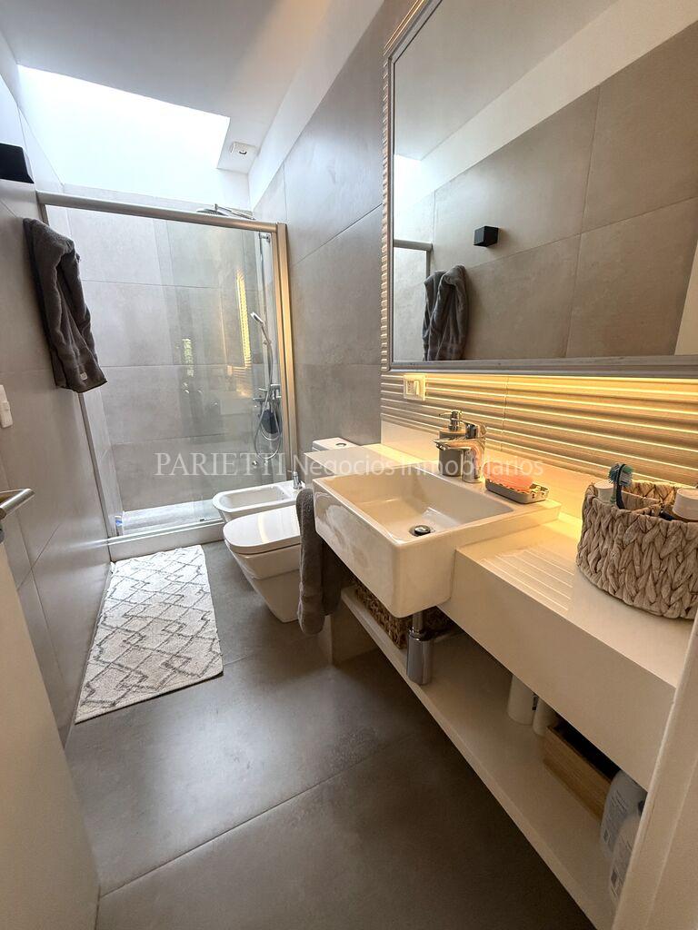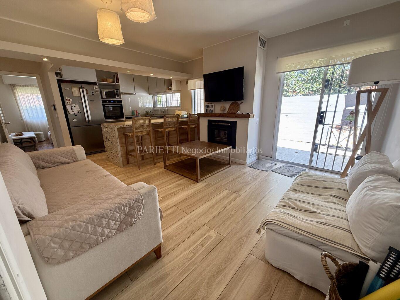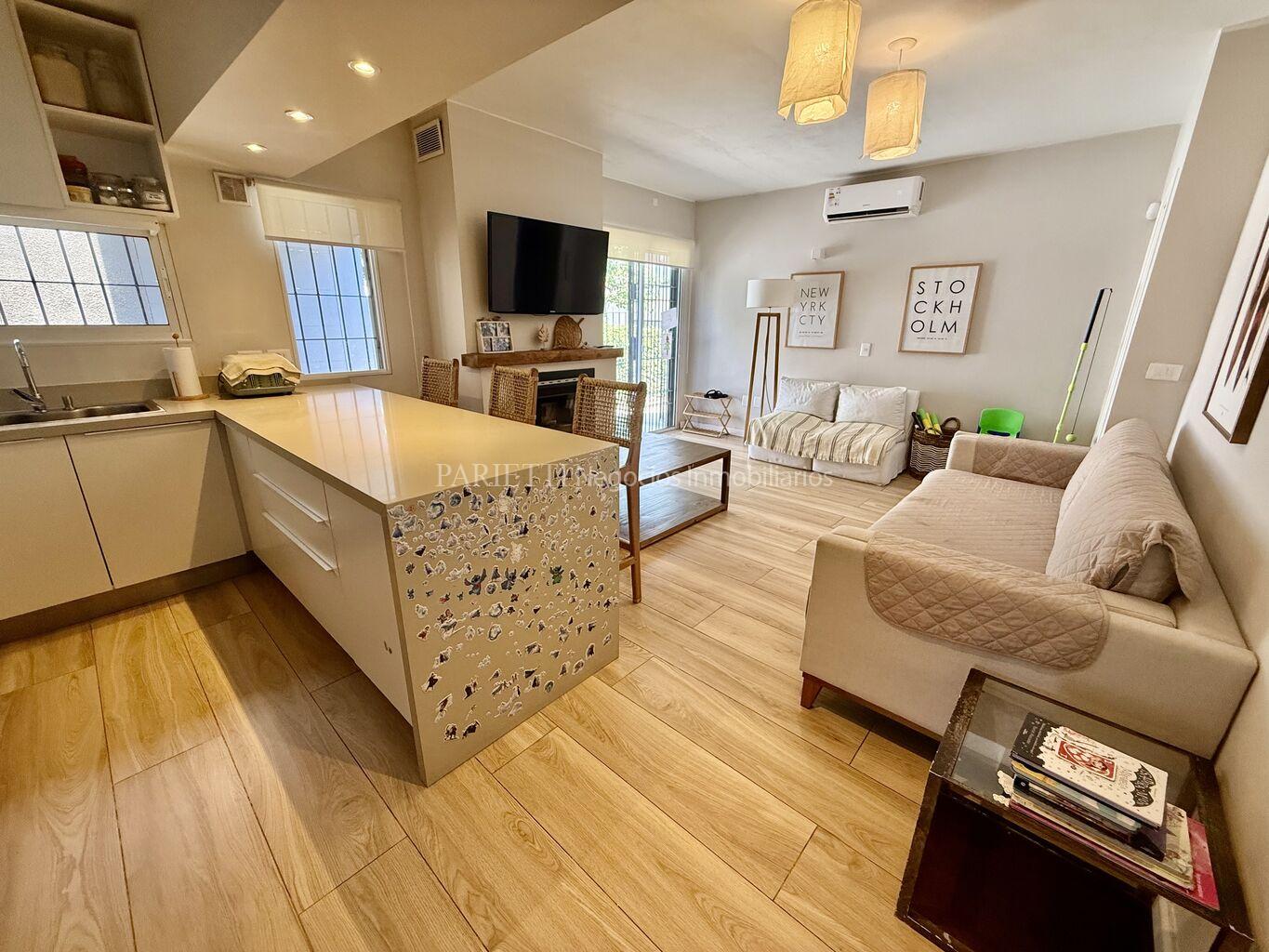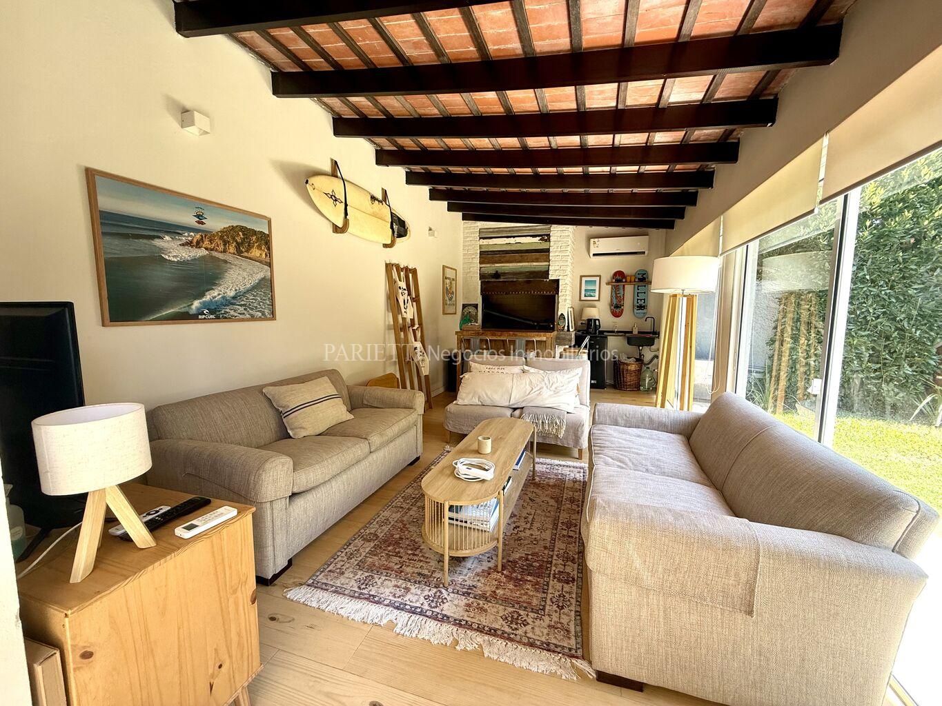 REFERENCIA........2317..........en Parietti Negocios Inmobiliarios SRL.Pleno Carrasco Sur. Impecable estado, ubicada a una cuadra de Arocena. Una planta. Estilo contemporáneo, con mucha luminosidad. NADA PARA HACERLE. Living- comedor, estar con cocina integrada y estufa a leña, 3 dormitorios, 2 baños. Muy lindo jardín al fondo, con una gran estar con baño completo y un muy buen parrillero con barra. Aires Acondicionados, y 2 estufas Vivion a pellets.