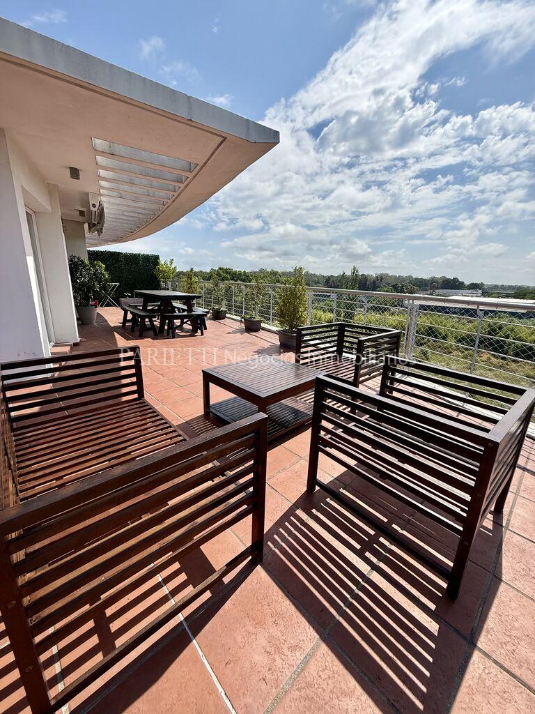Edificio Moderno, en un entorno muy verde. pallier, living comedor con salida a una impresionante terraza, toilette, 2 dormitorio, 2 baños, cocina. Garage. Seguridad presencial 24*7.