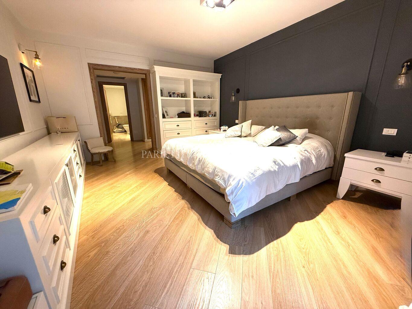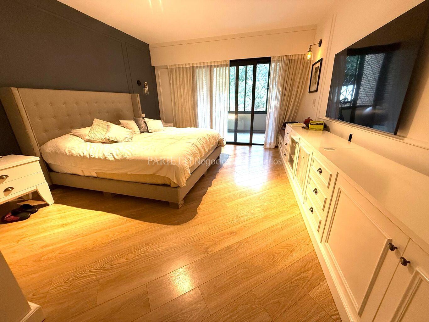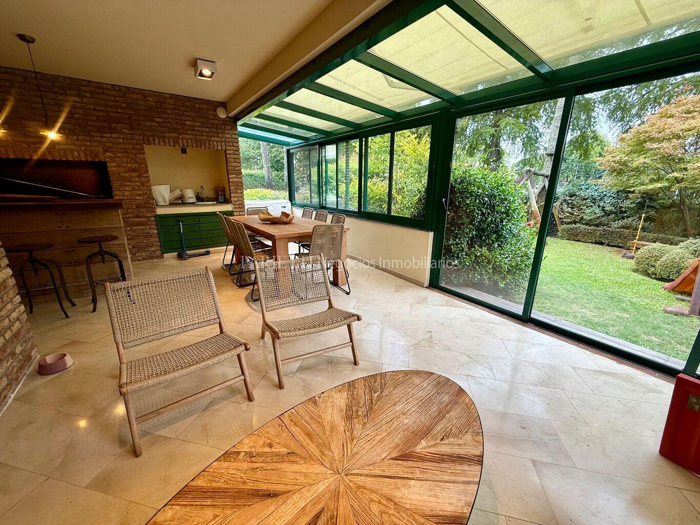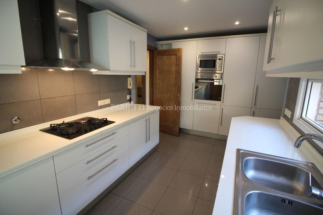 Pallier, toilette, living-comedor amplio, estar con estufa a leña, con salida a espectacular terraza cubierta , con parrillero y conexión al jardín de uso exclusivo. Cocina, terraza la lavadero, servicio completo, 3 dormitorios ( suite con vestidor), 2 baños. 3 Garajes. Gran box. Aire Acondicionado Central y losa radiante.