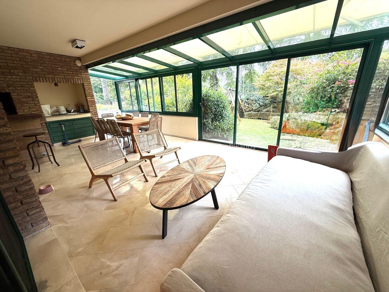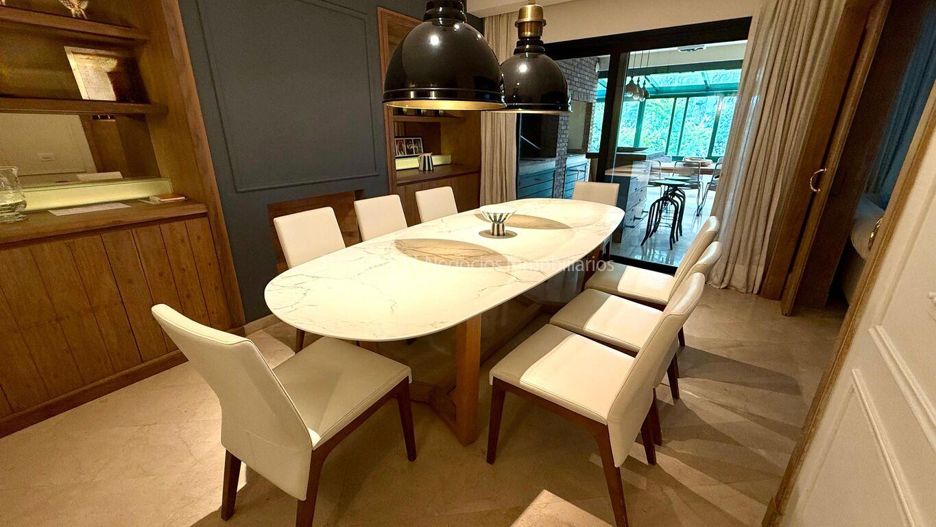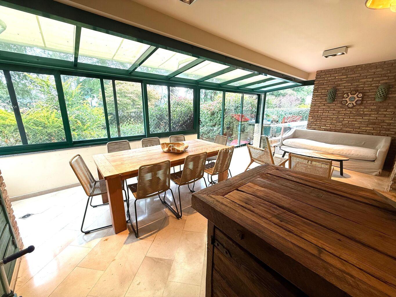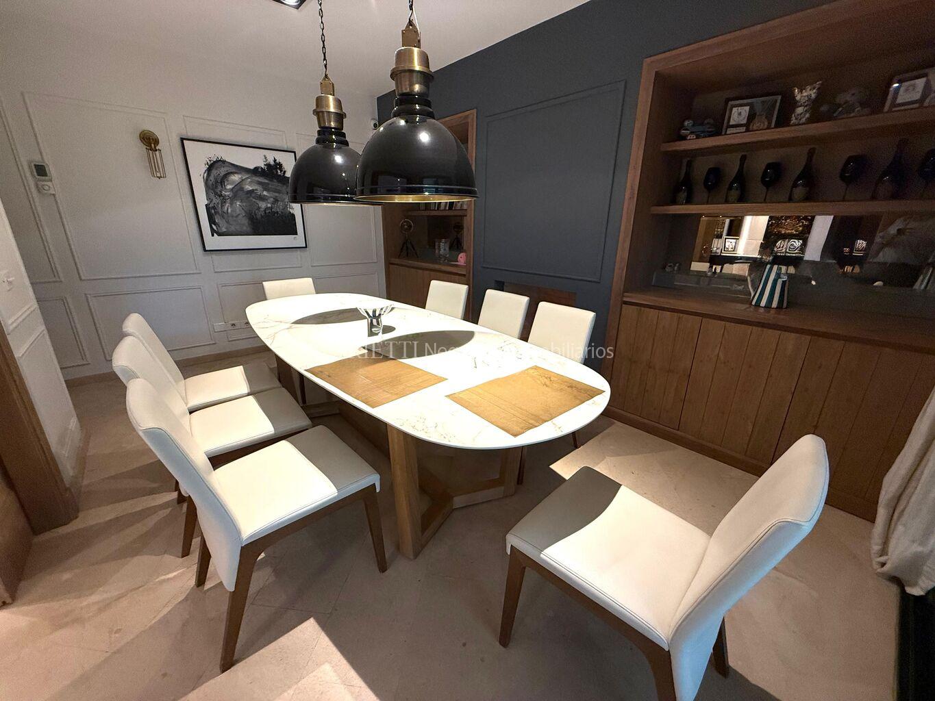 Pallier, toilette, living-comedor amplio, estar con estufa a leña, con salida a espectacular terraza cubierta , con parrillero y conexión al jardín de uso exclusivo. Cocina, terraza la lavadero, servicio completo, 3 dormitorios ( suite con vestidor), 2 baños. 3 Garajes. Gran box. Aire Acondicionado Central y losa radiante.