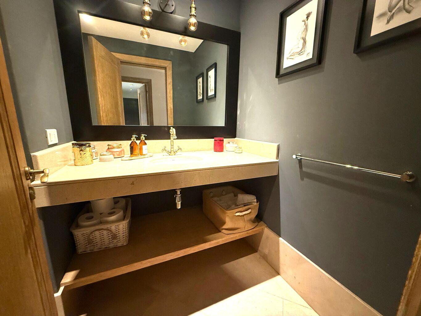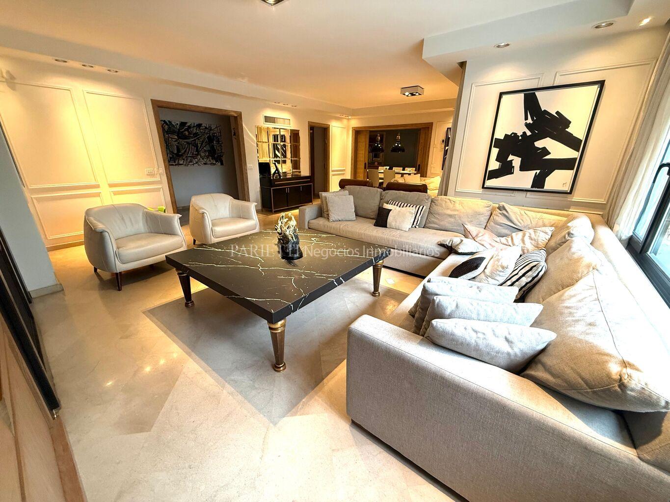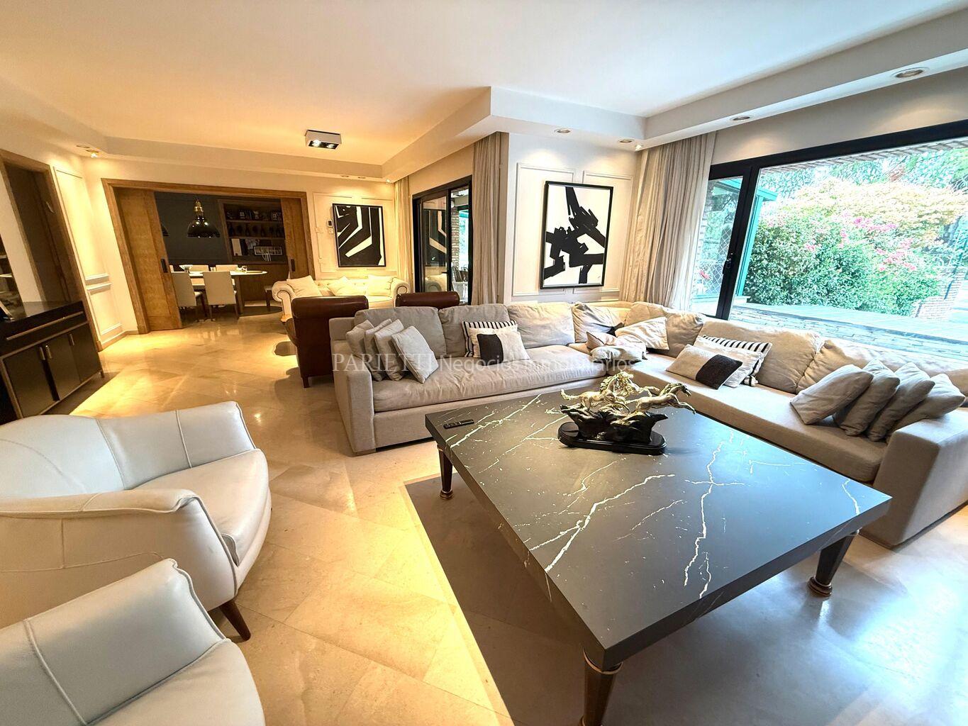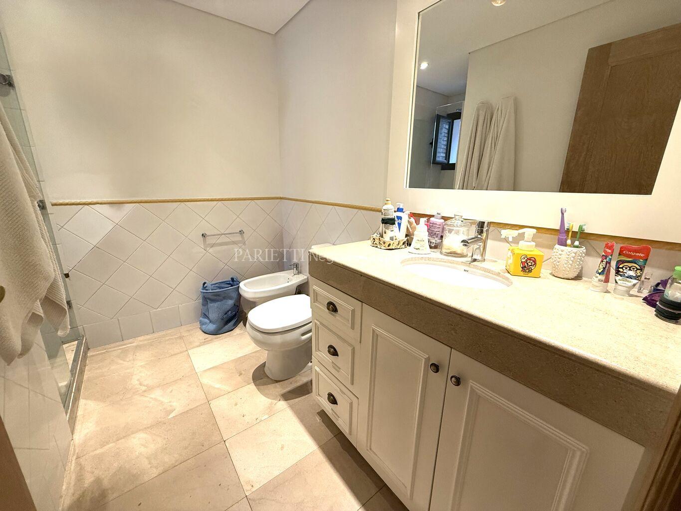 Pallier, toilette, living-comedor amplio, estar con estufa a leña, con salida a espectacular terraza cubierta , con parrillero y conexión al jardín de uso exclusivo. Cocina, terraza la lavadero, servicio completo, 3 dormitorios ( suite con vestidor), 2 baños. 3 Garajes. Gran box. Aire Acondicionado Central y losa radiante.
