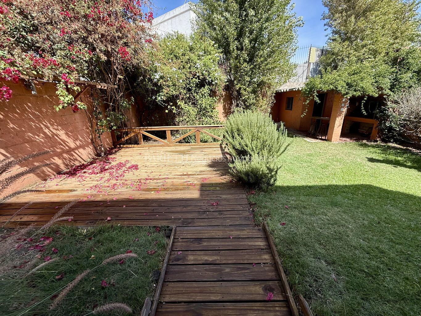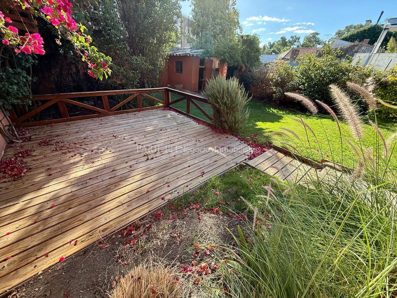 Muy lindo jardín con deck , parrillero cubierto con box.